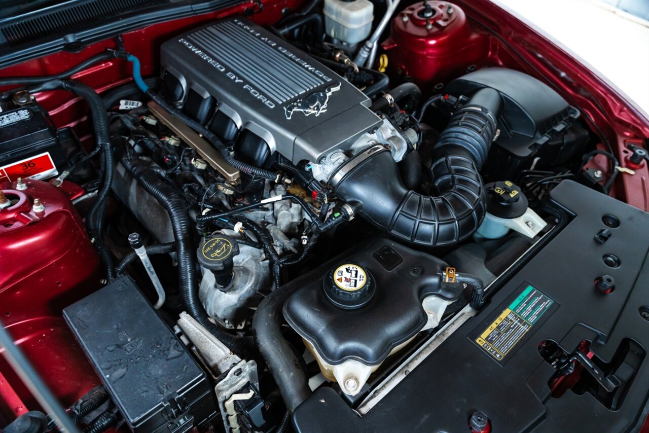 Finished in striking Laser Red Tinted Clearcoat Metallic, this Cobra presents well and is complemented by a black leather interior. The convertible top adds open-air enjoyment while preserving the aggressive styling and performance character expected from an SVT Cobra.