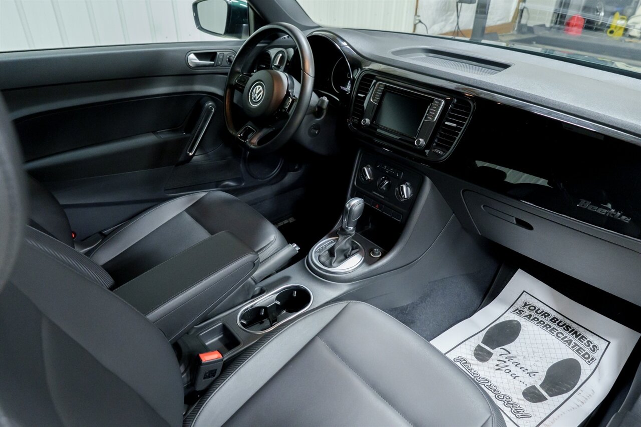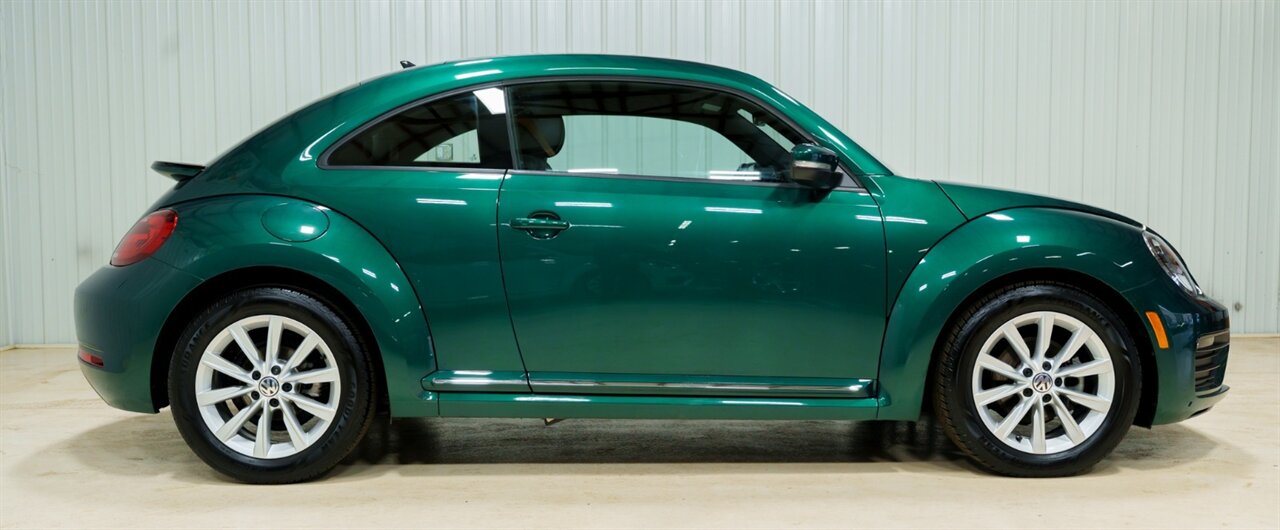 This 2018 Volkswagen Beetle Classic 2.0T S is an exceptionally clean, low-mileage example that has been meticulously maintained and properly serviced throughout its life. The vehicle has completed a full safety inspection and is truly turn-key and ready for the road, offering peace of mind to its next owner.Finished in the rare and striking Bottle Green Metallic, this Beetle stands out from the crowd and draws attention everywhere it goes. The exterior pairs beautifully with the Titan Black leatherette interior, delivering a refined yet sporty appearance that complements the Beetle’s iconic design. This is a car that blends timeless style with modern drivability and comfort.