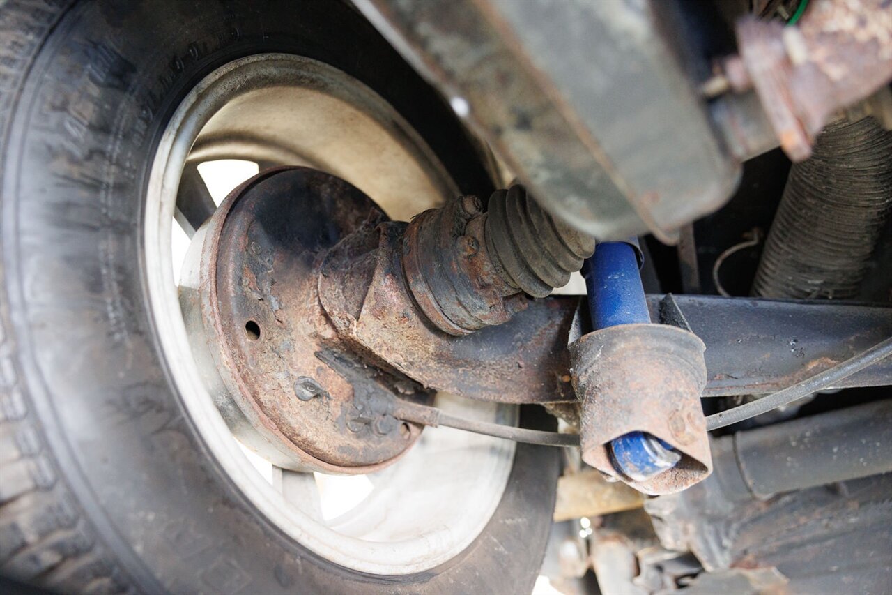 Underside: Shows signs of previous repairs, including floor pans, which are solid with some surface corrosion